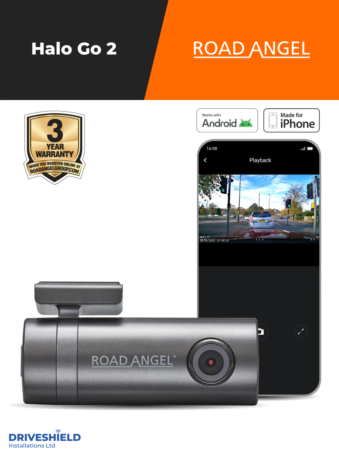 Upgrade your in-car security with the Road Angel Halo Go 2 Dash Cam – a compact, high-performance 2K 1296p HD dash cam designed for reliable, all-season protection. Featuring ultra-clear recording and a wide 140° field of view, it captures every detail on the road with precision.